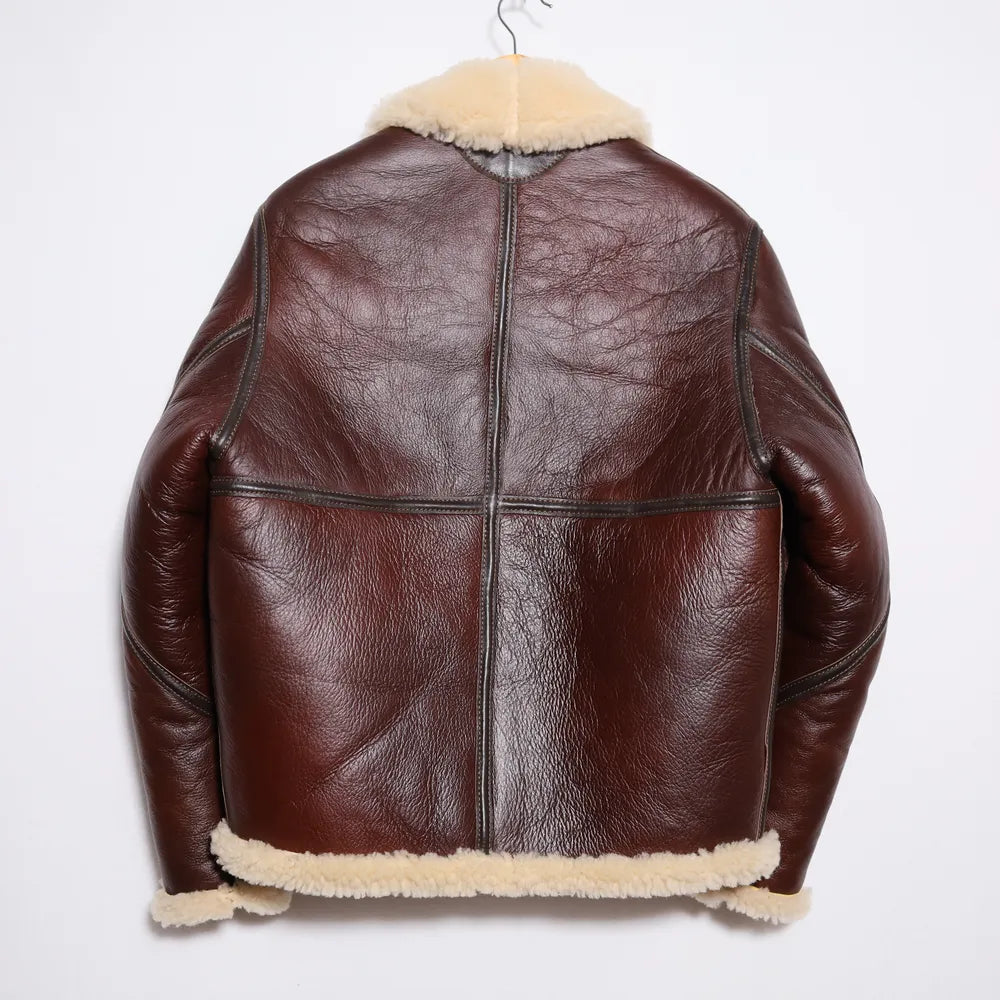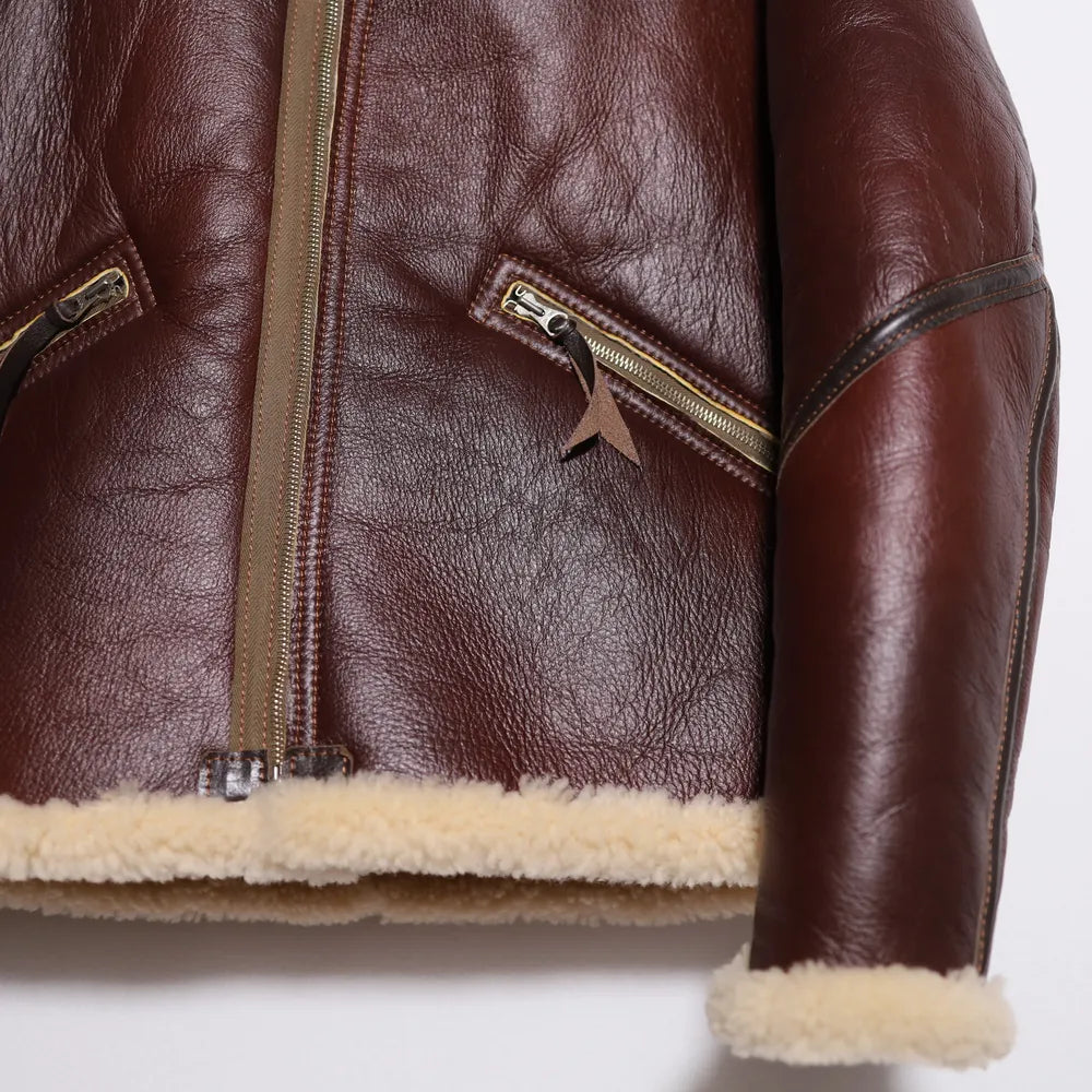 Sa laine de mouton écru et son extérieur en cuir marron foncé robuste en font la plus pratique des vestes de vol. Les finitions sont disponibles en brun foncé (Seal Brown) ou contrastées, avec des coutures en cuir roux (Russet Horse).