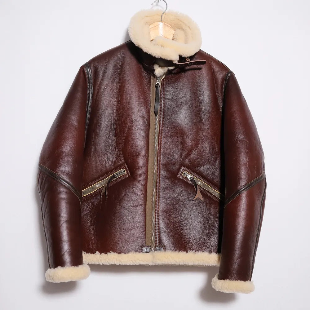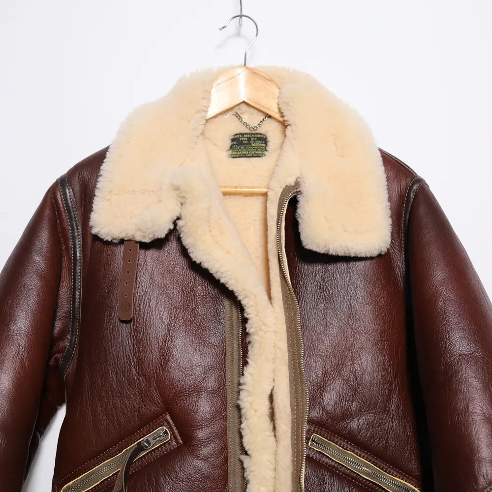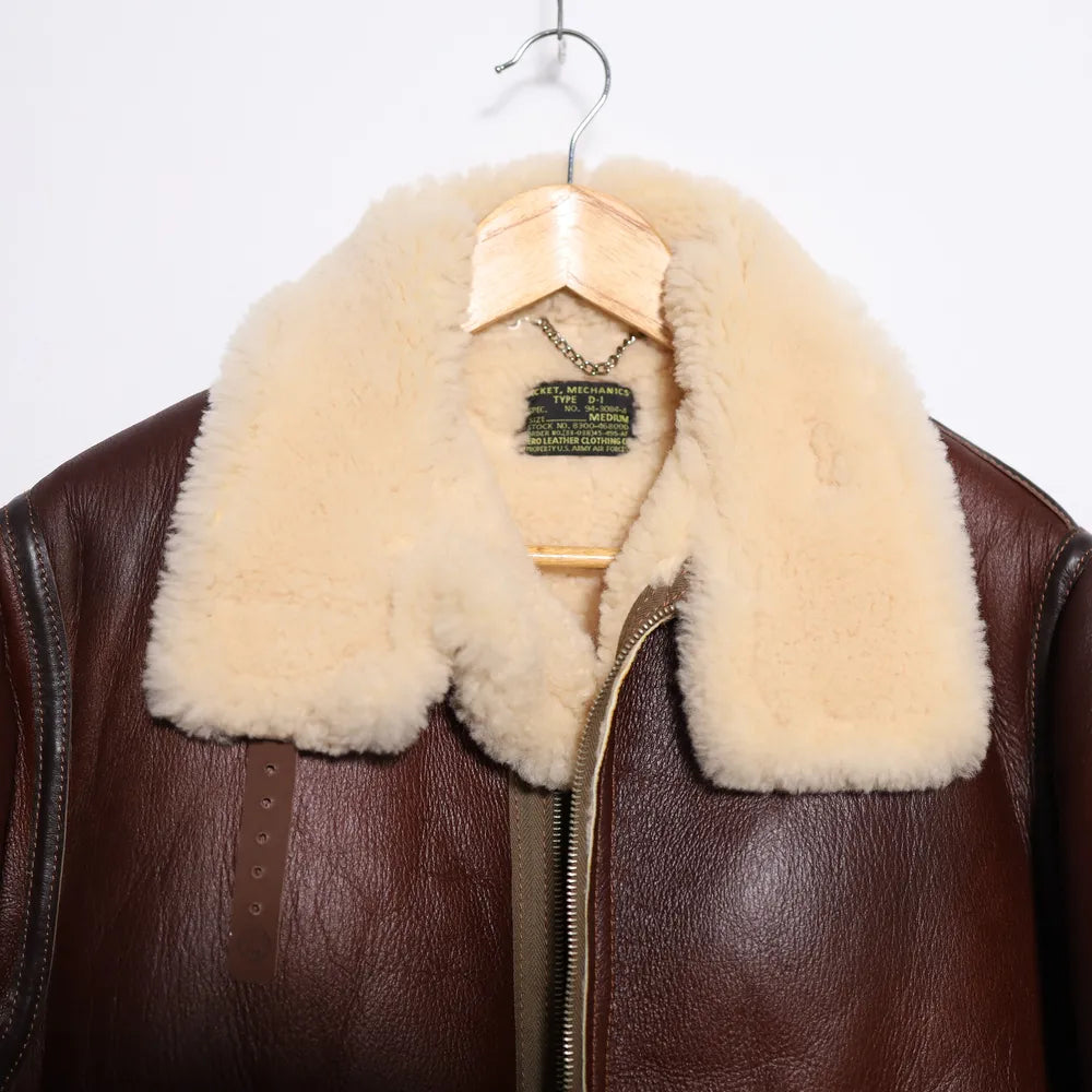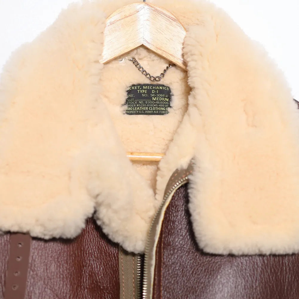 Une simple veste légère en peau de mouton, dotée de deux poches zippées, conçue à l'origine pour le personnel au sol de l'USAAF, souvent amené à travailler dans des conditions climatiques extrêmes.