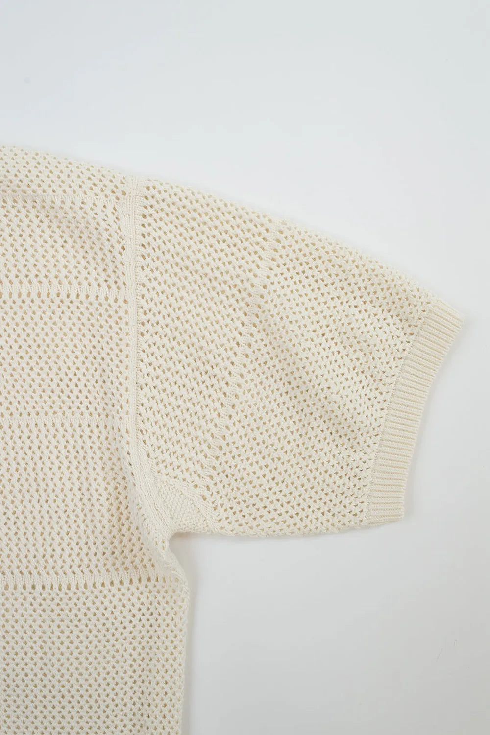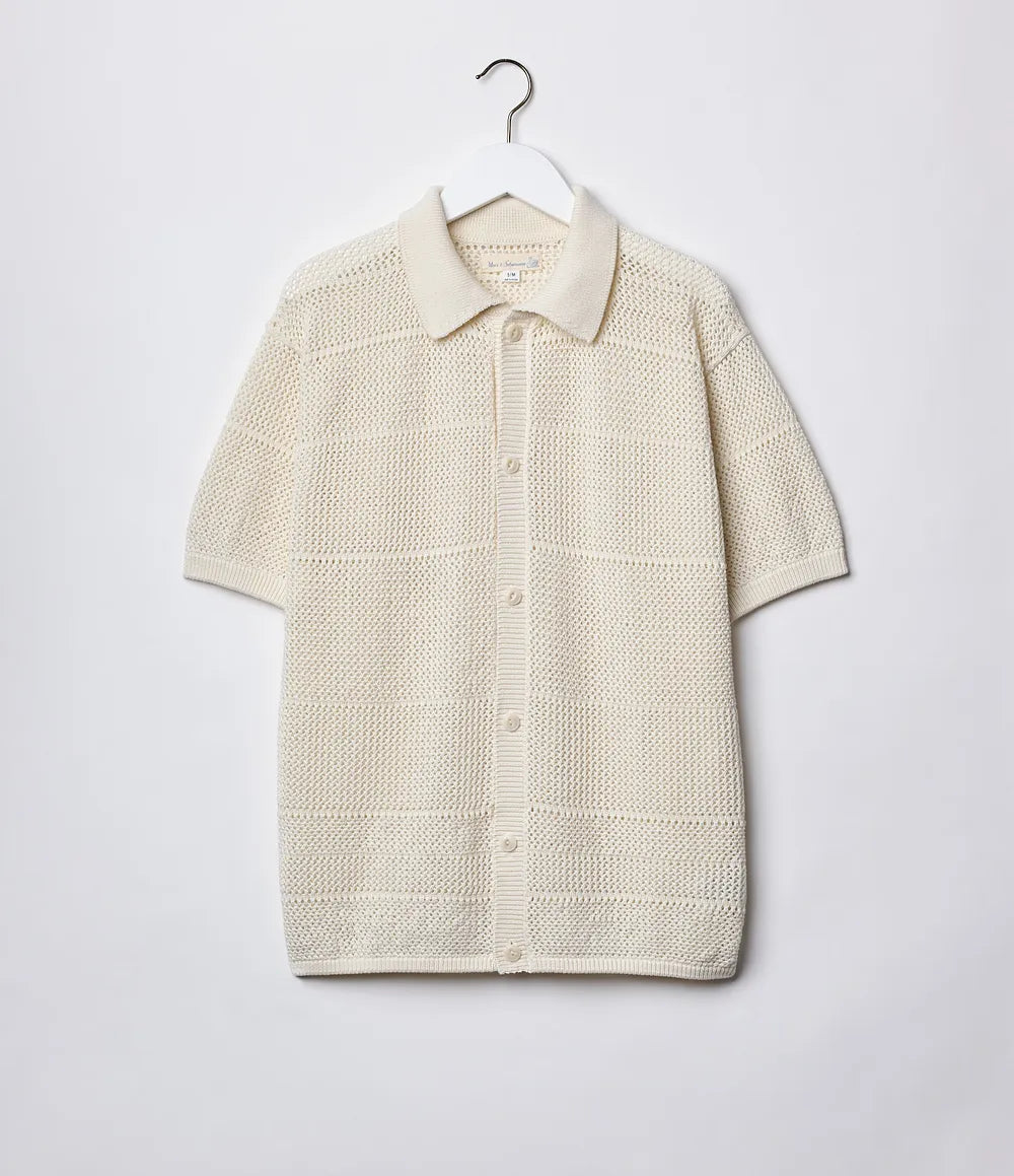 Entièrement confectionnée en coton 100 % biologique. Avec sa coupe décontractée et ses manches courtes, elle offre un confort respirant idéal pour les beaux jours. La texture crochetée transparente favorise la ventilation, tandis que le col côtelé et les boutons en corozo ajoutent une touche raffinée.