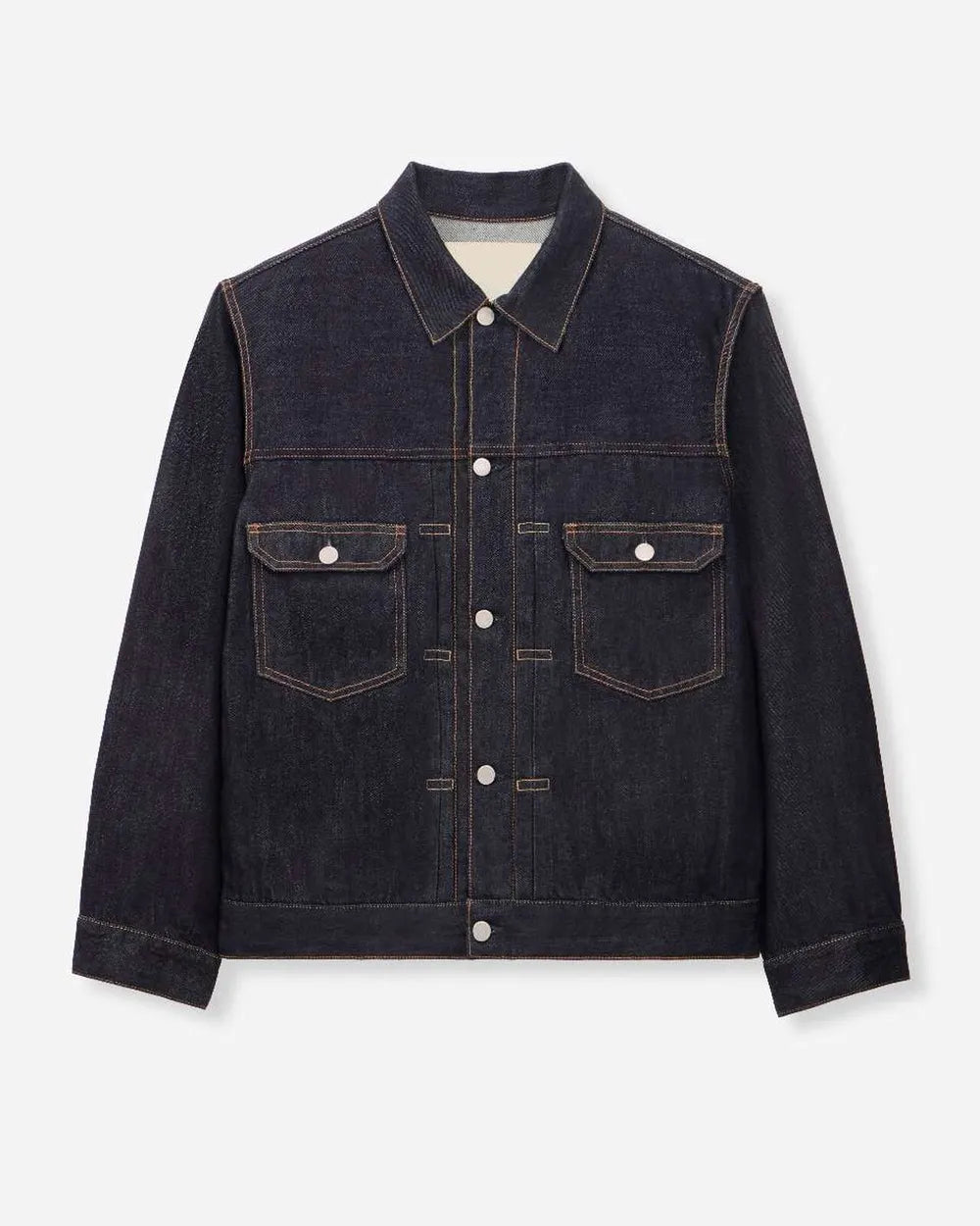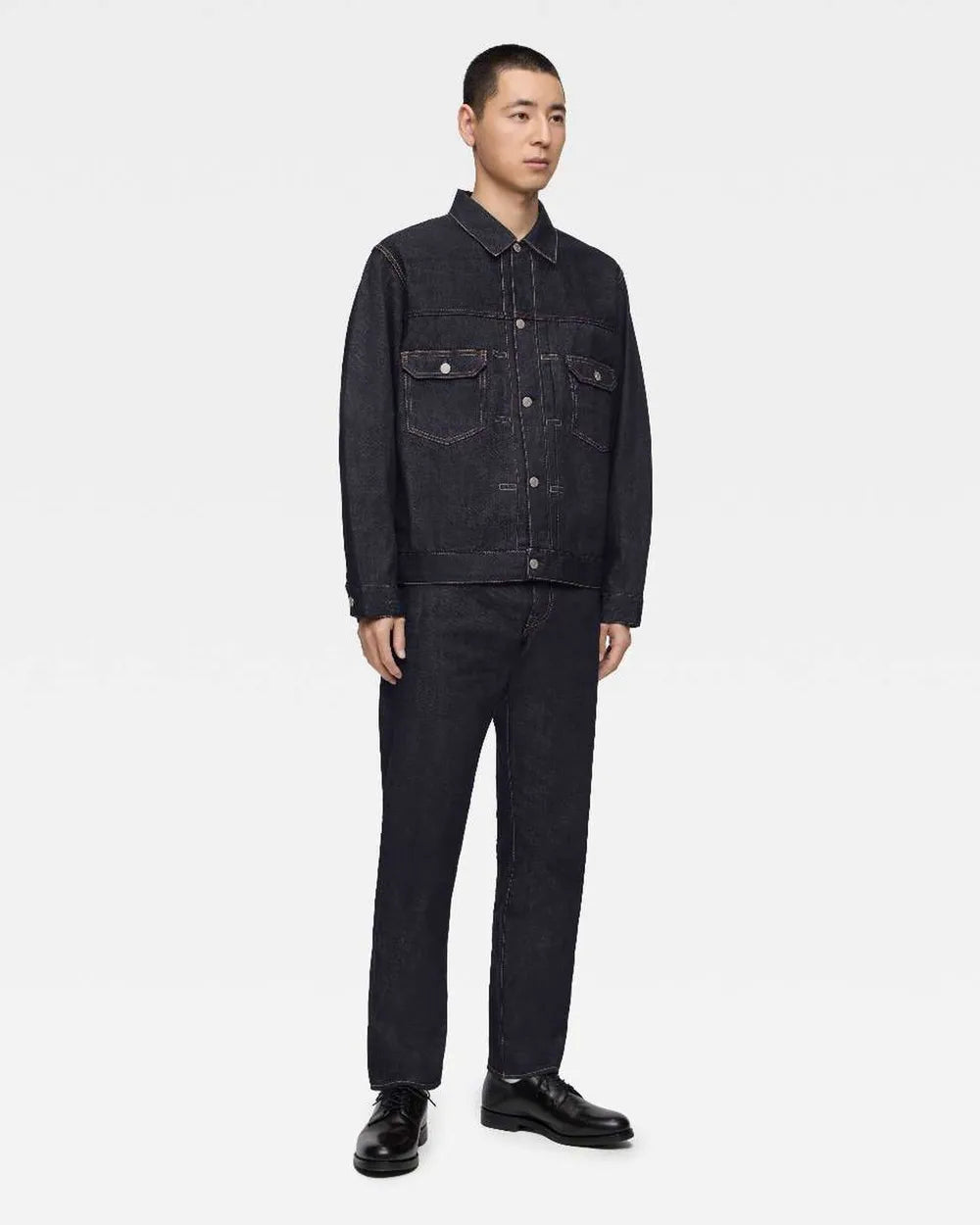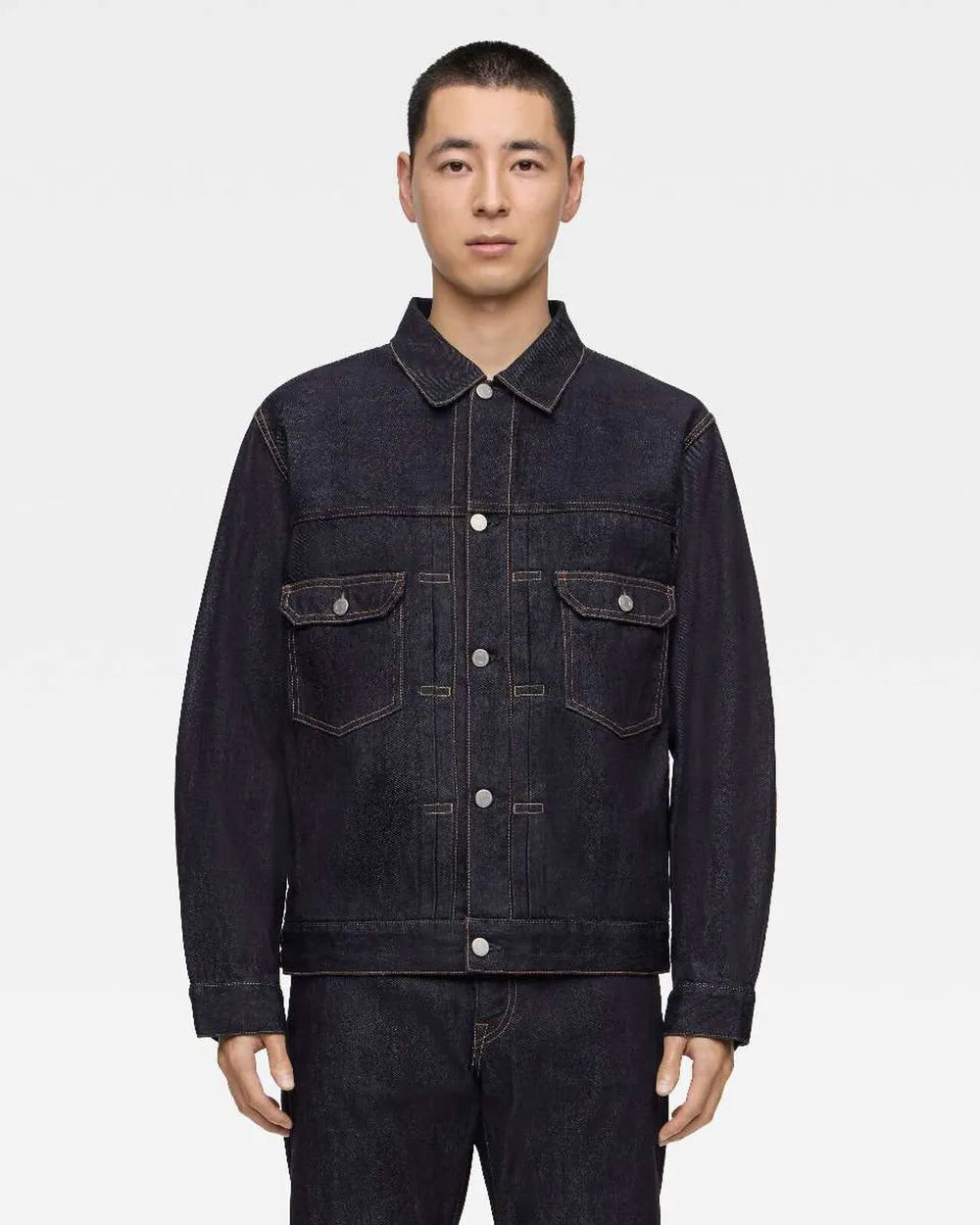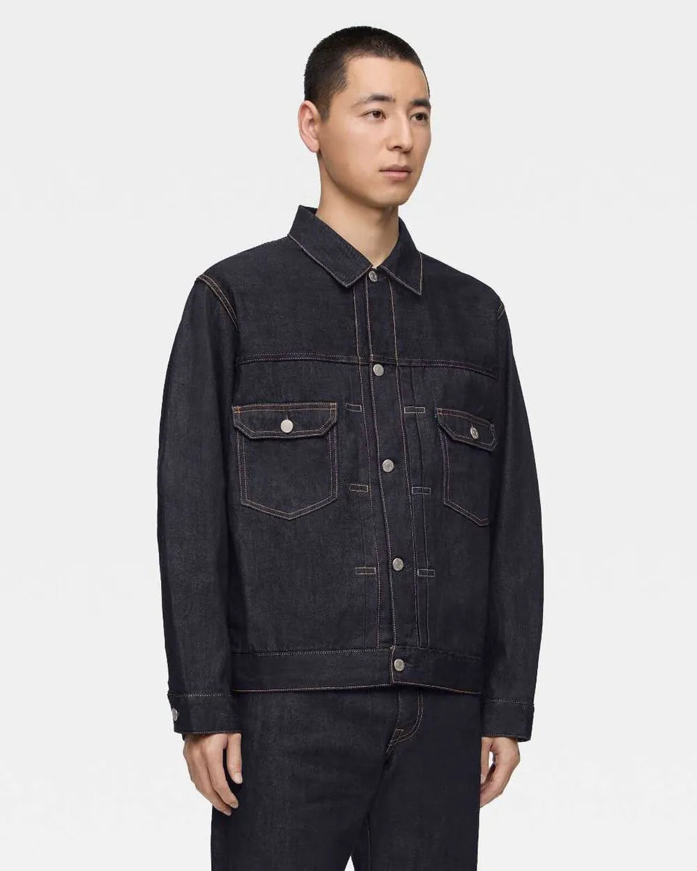 La veste en jeans #002 est une veste à double poche à la coupe classique. Elle présente une largeur légèrement ample et une longueur moyenne. Ses poches latérales pratiques et fonctionnelles sont très bien pensées. Cette veste en jean intemporelle et universelle est le fruit d'un patron qui privilégie une silhouette élégante et un confort optimal.